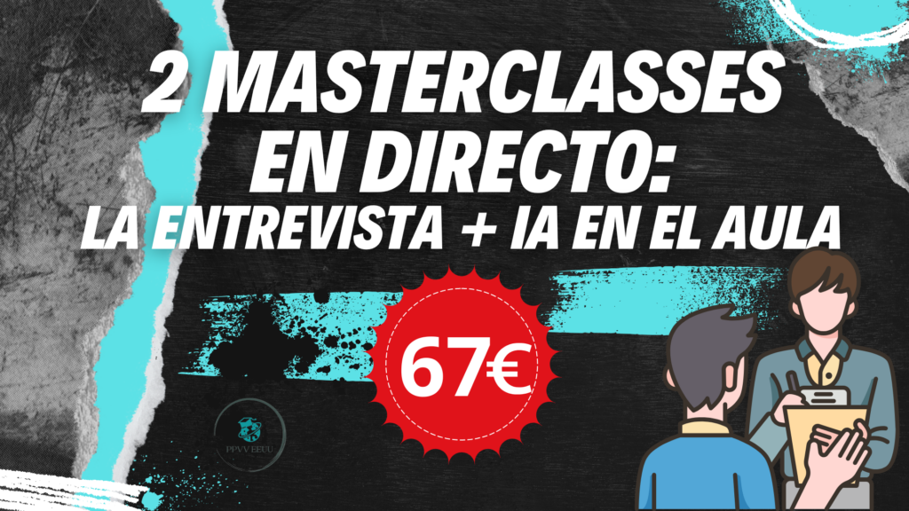 Grabación de 2 MASTERCLASES: una para PREPARAR LA ENTREVISTA y la otra sobre el USO DE LA INTELIGENCIA ARTIFICIAL en el aula donde aprenderás: